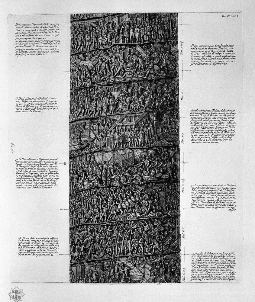 Wir bieten Ihnen eine handgefertigte Reproduktion auf Leinwand des berühmten Kunstwerks 'Ansicht der Hauptfassade der Trajanssäule, sechs Bretter zusamme' von Giovanni Battista Piranesi, aus dem Reproduktionsmuseum.