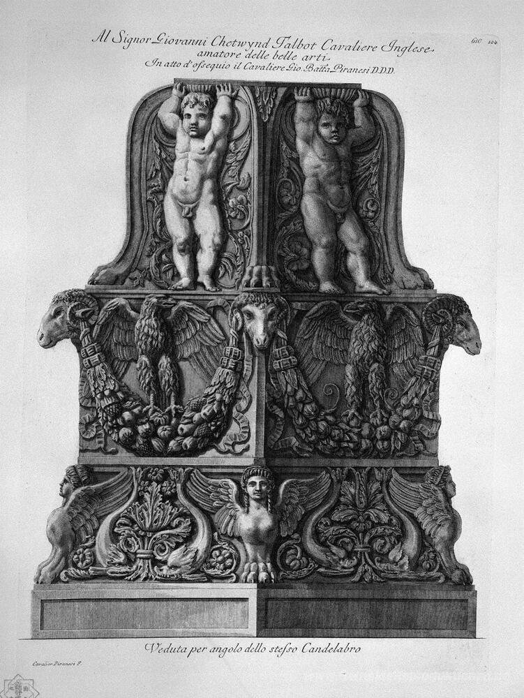 Wir bieten Ihnen eine handgefertigte Reproduktion auf Leinwand des berühmten Kunstwerks 'Ansicht von jeder Ecke des gleichen Leuchter' von Giovanni Battista Piranesi, aus dem Reproduktionsmuseum.