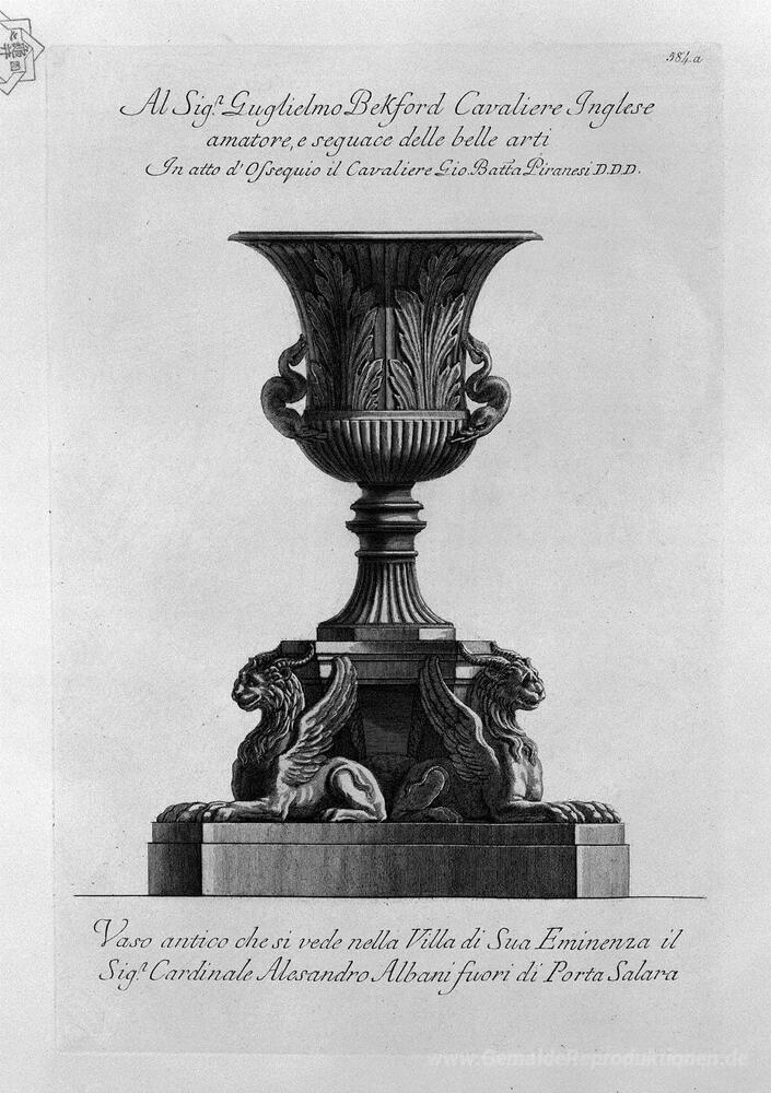 Wir bieten Ihnen eine handgefertigte Reproduktion auf Leinwand des berühmten Kunstwerks 'Antike Vase aus Marmor (Villa Albani)' von Giovanni Battista Piranesi, aus dem Reproduktionsmuseum.