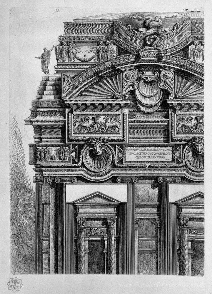 Wir bieten Ihnen eine handgefertigte Reproduktion auf Leinwand des berühmten Kunstwerks 'Architektonischen Dekoration' von Giovanni Battista Piranesi, aus dem Reproduktionsmuseum.