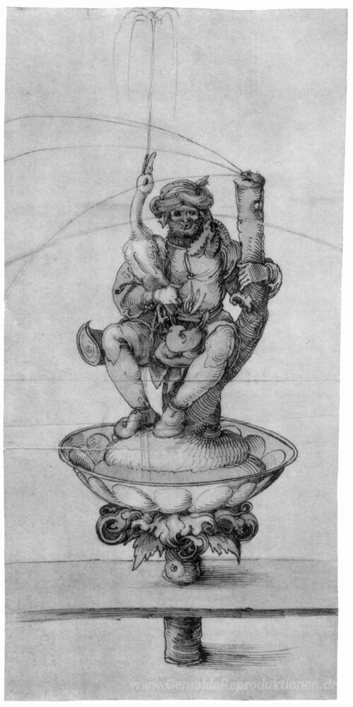 Wir bieten Ihnen eine handgefertigte Reproduktion auf Leinwand des berühmten Kunstwerks 'Bauer Gans mit einer Brunnenfigur' von Albrecht Durer, aus dem Reproduktionsmuseum.