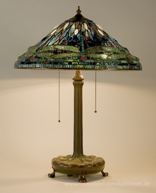Wir bieten Ihnen eine handgefertigte Reproduktion auf Leinwand des berühmten Kunstwerks 'Bibliothek Lampe. Dragonfly & Water Design' von Louis Comfort Tiffany, aus dem Reproduktionsmuseum.