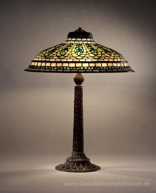 Wir bieten Ihnen eine handgefertigte Reproduktion auf Leinwand des berühmten Kunstwerks 'Bibliothek Lampe. Indische Shisha-Design' von Louis Comfort Tiffany, aus dem Reproduktionsmuseum.