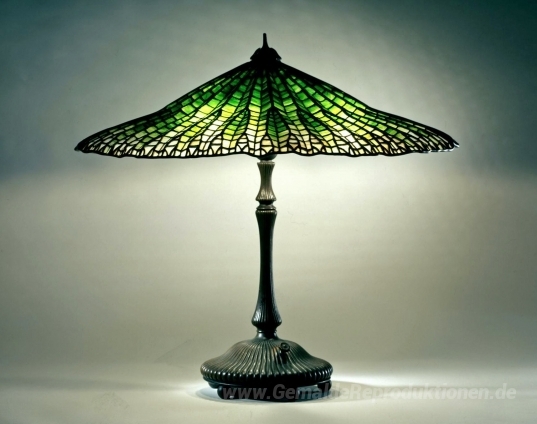 Wir bieten Ihnen eine handgefertigte Reproduktion auf Leinwand des berühmten Kunstwerks 'Bibliothek Lampe. Lotus, Pagode Design' von Louis Comfort Tiffany, aus dem Reproduktionsmuseum.