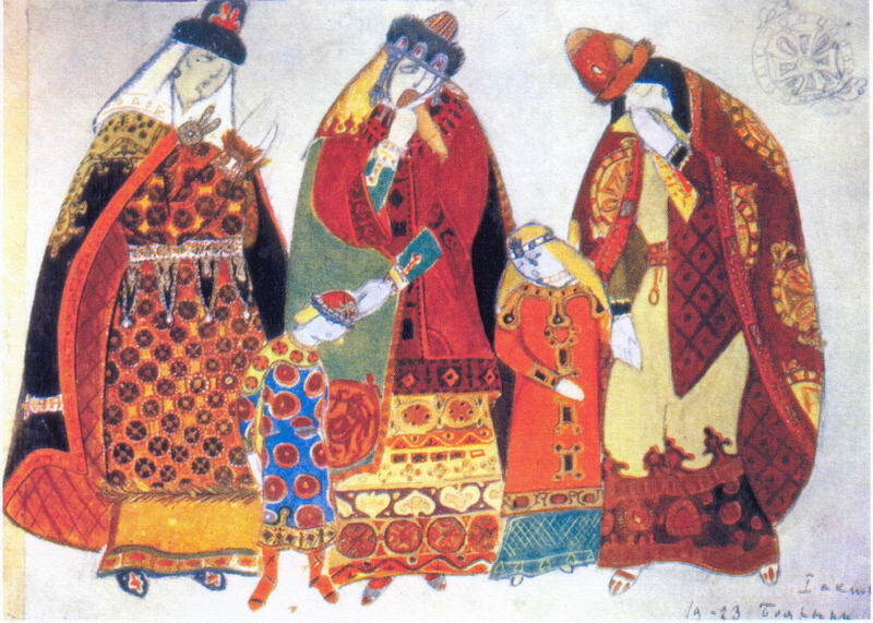 Wir bieten Ihnen eine handgefertigte Reproduktion auf Leinwand des berühmten Kunstwerks 'Boyarynia und Kinder' von Nicholas Roerich, aus dem Reproduktionsmuseum.
