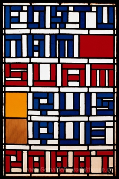 Wir bieten Ihnen eine handgefertigte Reproduktion auf Leinwand des berühmten Kunstwerks 'Buntglasfenster. Bleiglas.' von Theo van Doesburg, aus dem Reproduktionsmuseum.