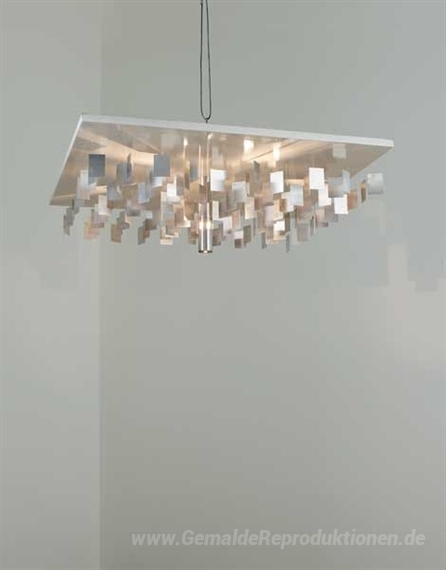 Wir bieten Ihnen eine handgefertigte Reproduktion auf Leinwand des berühmten Kunstwerks 'Continuel-Lumière au Plafond / Galassia (Deckenleuchte)' von Julio Le Parc, aus dem Reproduktionsmuseum.