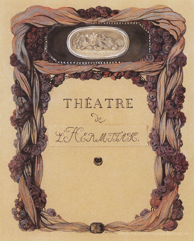 Wir bieten Ihnen eine handgefertigte Reproduktion auf Leinwand des berühmten Kunstwerks 'Cover of Theaterprogramm "Theatre de L Hermitage '' von Konstantin Somov, aus dem Reproduktionsmuseum.
