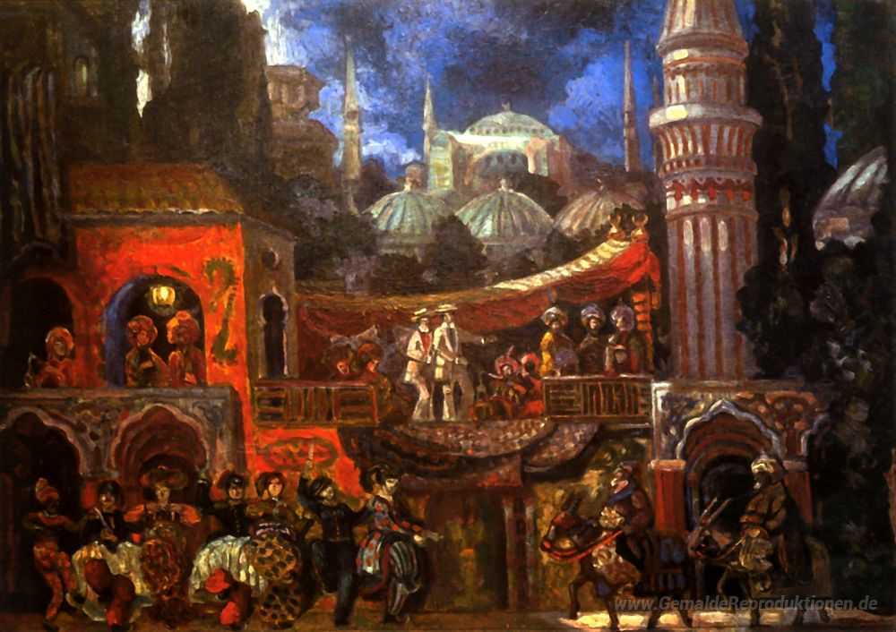 Wir bieten Ihnen eine handgefertigte Reproduktion auf Leinwand des berühmten Kunstwerks 'Dekoration für "Unterhaltung für die Mädchen" von Kuzmin' von Serge Sudeikin, aus dem Reproduktionsmuseum.