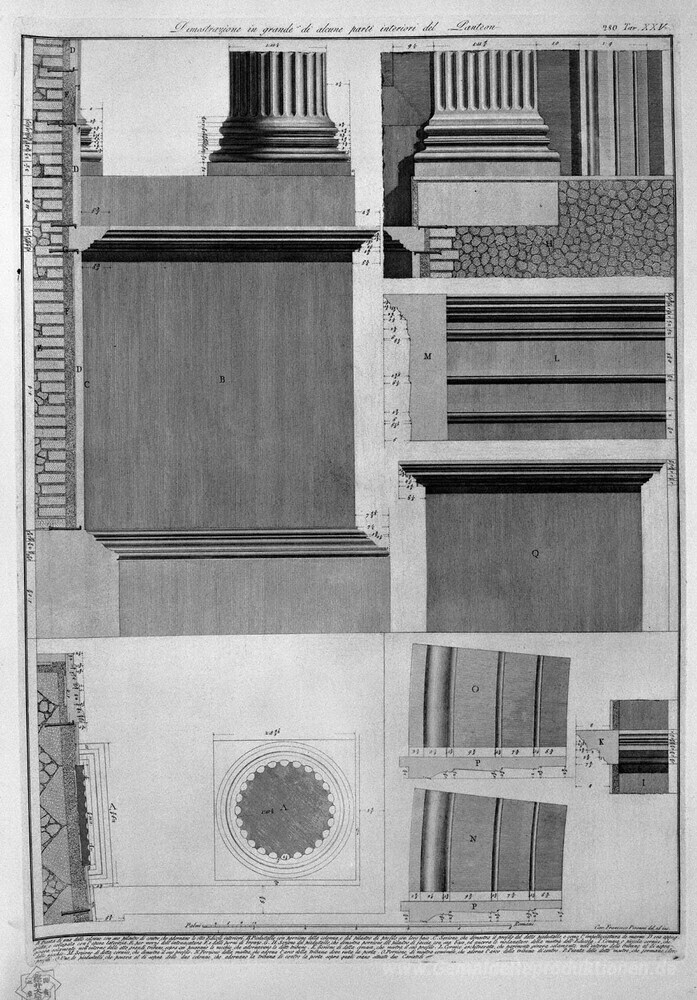 Wir bieten Ihnen eine handgefertigte Reproduktion auf Leinwand des berühmten Kunstwerks 'Demonstration in weiten Teilen im Inneren des Pantheon' von Giovanni Battista Piranesi, aus dem Reproduktionsmuseum.