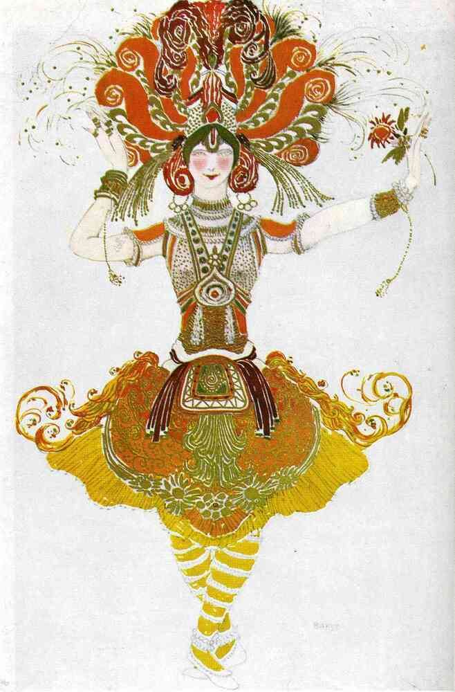 Willkommen in unserer exklusiven Kollektion von Ölgemälden, wo Kunst und Leidenschaft aufeinandertreffen. Unser Highlight, Der Feuervogel, Kostüm für Tamara Karsavina, stammt von dem renommierten Künstler Leon Bakst, dessen außergewöhnliches Talent und außergewöhnlicher Stil die Welt der Bühnenkunst revolutionierten. Mit seinem Einsatz lebendiger Farben und eindrucksvoller Formen bringt Bakst Emotionen und Geschichten zum Leben, die den Betrachter in ihren Bann ziehen.