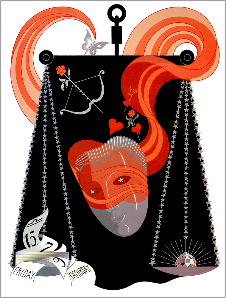 Wir bieten Ihnen eine handgefertigte Reproduktion auf Leinwand des berühmten Kunstwerks 'Der Tierkreis, Waage' von Erte, aus dem Reproduktionsmuseum.