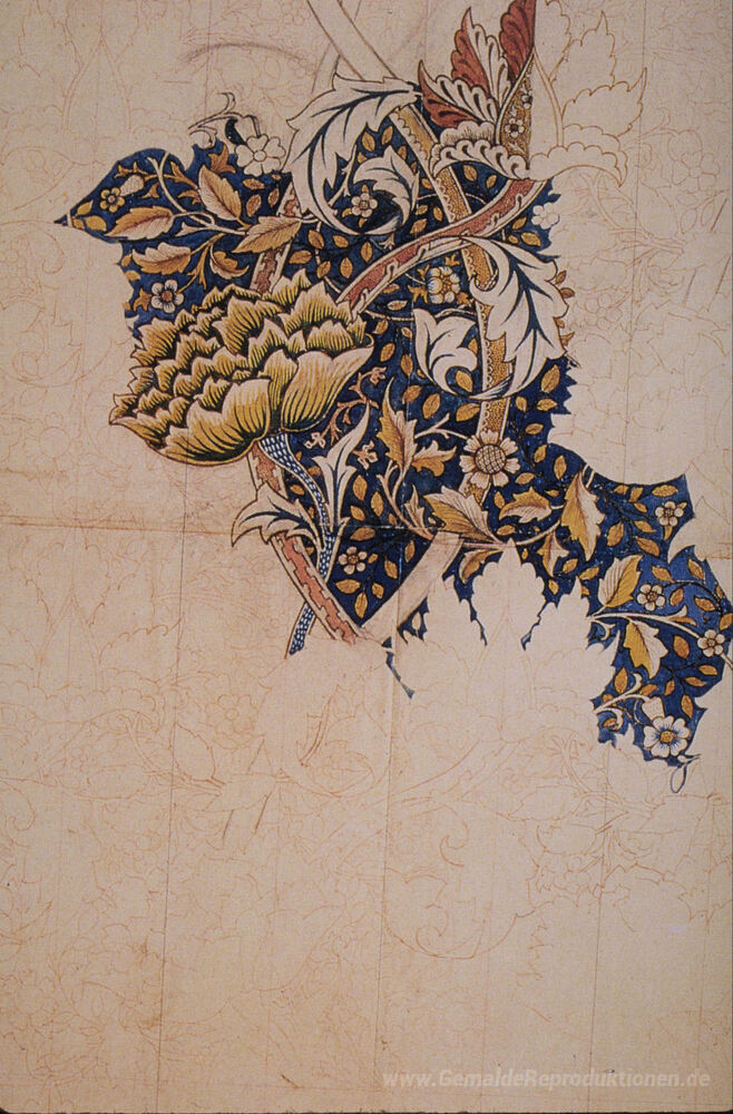 Wir bieten Ihnen eine handgefertigte Reproduktion auf Leinwand des berühmten Kunstwerks 'Design für Windrush bedruckten Textil' von William Morris, aus dem Reproduktionsmuseum.