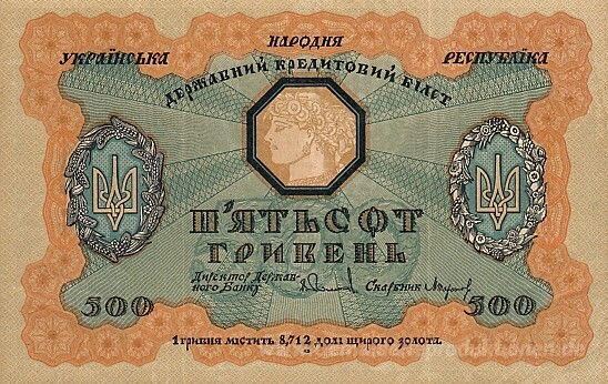 Wir bieten Ihnen eine handgefertigte Reproduktion auf Leinwand des berühmten Kunstwerks 'Design von fünfhundert Griwna Rechnung des Ukrainischen National' von Heorhiy Narbut, aus dem Reproduktionsmuseum.