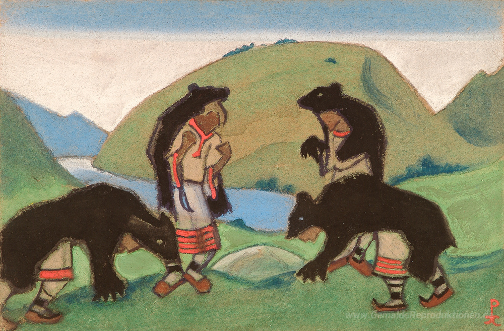 Wir bieten Ihnen eine handgefertigte Reproduktion auf Leinwand des berühmten Kunstwerks 'Die Ältesten weared in Bärenhäute' von Nicholas Roerich, aus dem Reproduktionsmuseum.