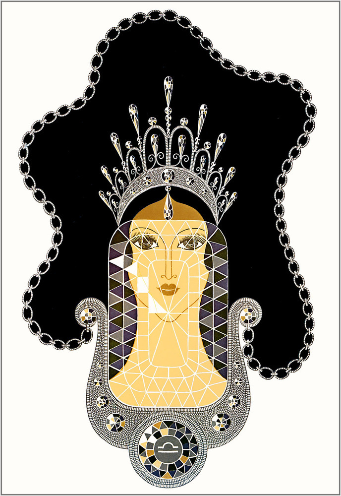 Wir bieten Ihnen eine handgefertigte Reproduktion auf Leinwand des berühmten Kunstwerks 'Die Edelsteine, Diamanten' von Erte, aus dem Reproduktionsmuseum.
