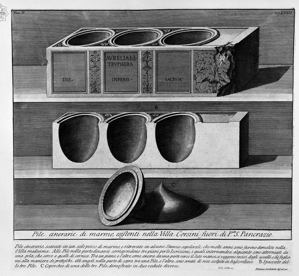Wir bieten Ihnen eine handgefertigte Reproduktion auf Leinwand des berühmten Kunstwerks 'Die römische Altertümer, t. 2, Tafel LVIII. Pile of Marmor Urnen' von Giovanni Battista Piranesi, aus dem Reproduktionsmuseum.
