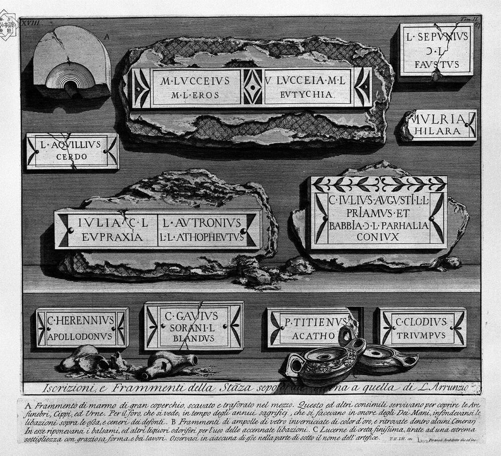 Wir bieten Ihnen eine handgefertigte Reproduktion auf Leinwand des berühmten Kunstwerks 'Die römische Altertümer, t. 2, Teller XVIII. Inschriften und Fra' von Giovanni Battista Piranesi, aus dem Reproduktionsmuseum.