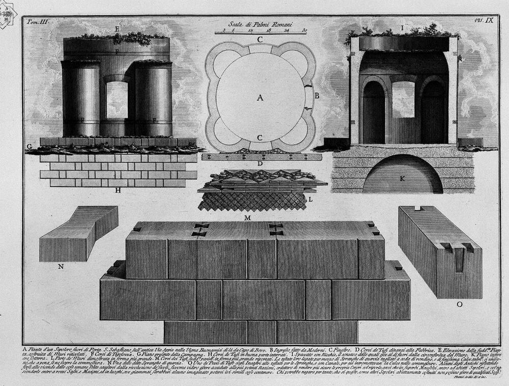 Wir bieten Ihnen eine handgefertigte Reproduktion auf Leinwand des berühmten Kunstwerks 'Die römische Altertümer, t. 3, Tafel IX. Plan des Grabes außerha' von Giovanni Battista Piranesi, aus dem Reproduktionsmuseum.