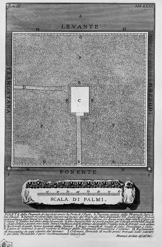 Wir bieten Ihnen eine handgefertigte Reproduktion auf Leinwand des berühmten Kunstwerks 'Die römische Altertümer, t. 3, Tafel XLIV. Cestius-Pyramide Kart' von Giovanni Battista Piranesi, aus dem Reproduktionsmuseum.