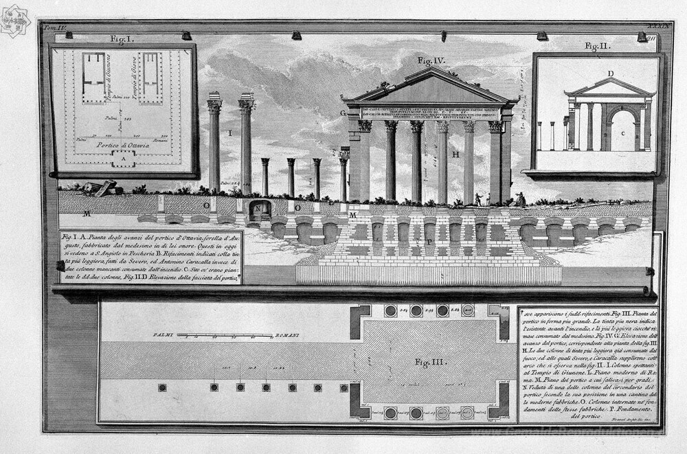 Wir bieten Ihnen eine handgefertigte Reproduktion auf Leinwand des berühmten Kunstwerks 'Die römische Altertümer, t. 4, Tafel XXXIX. Rissen und Ansichten' von Giovanni Battista Piranesi, aus dem Reproduktionsmuseum.