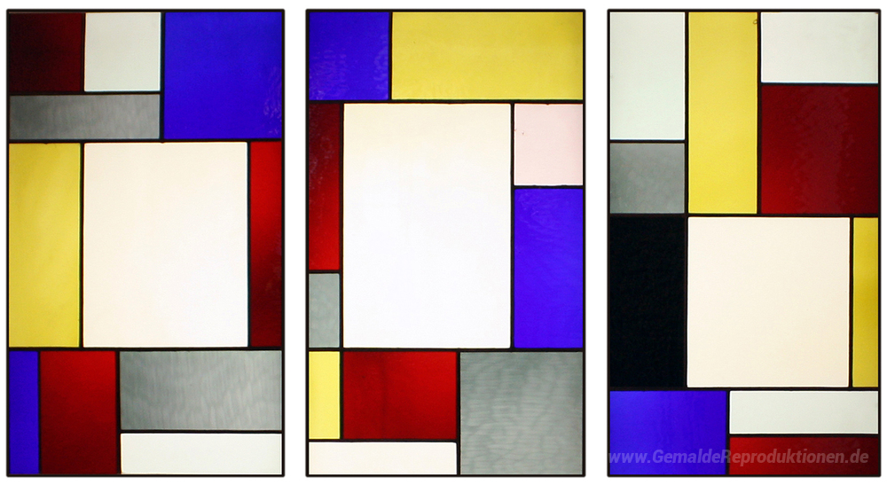 Wir bieten Ihnen eine handgefertigte Reproduktion auf Leinwand des berühmten Kunstwerks 'Dreiseitigen Glasfenster' von Theo van Doesburg, aus dem Reproduktionsmuseum.