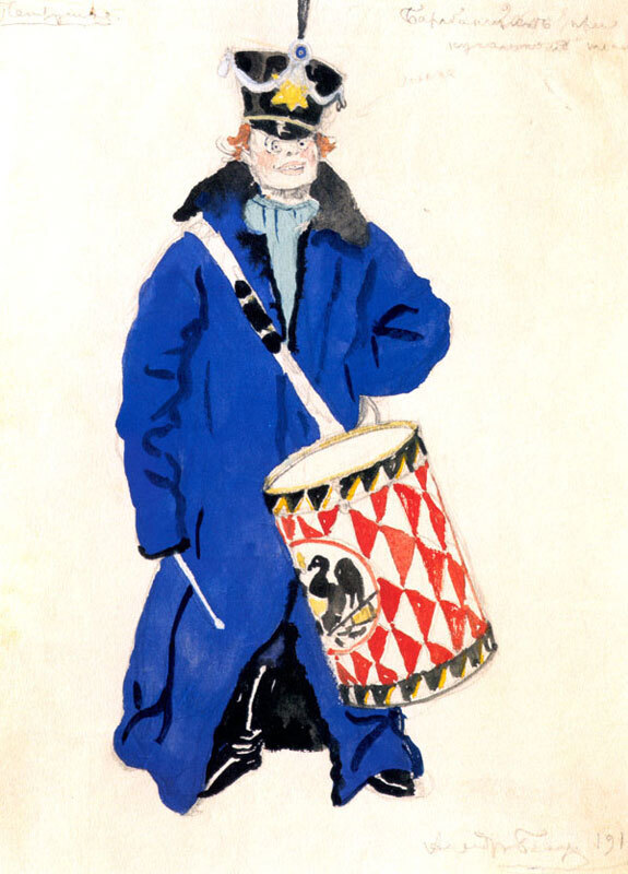 Wir bieten Ihnen eine handgefertigte Reproduktion auf Leinwand des berühmten Kunstwerks 'Drummer eines Puppen' von Alexandre Benois, aus dem Reproduktionsmuseum.