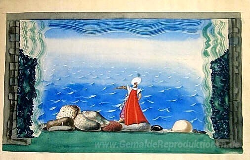 Wir bieten Ihnen eine handgefertigte Reproduktion auf Leinwand des berühmten Kunstwerks 'Ein Buccaneer am Ufer des Meeres. Bühnenbild.' von Jury Annenkov, aus dem Reproduktionsmuseum.