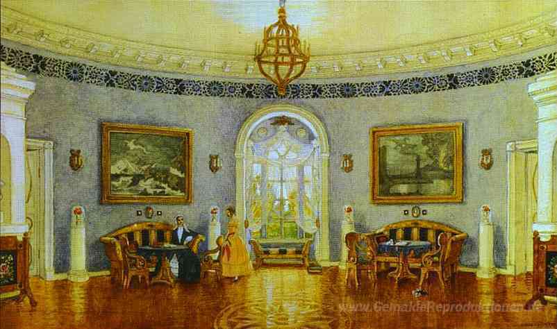 Wir bieten Ihnen eine handgefertigte Reproduktion auf Leinwand des berühmten Kunstwerks 'Ein Monat auf dem Lande' von Mstislav Dobuzhinsky, aus dem Reproduktionsmuseum.