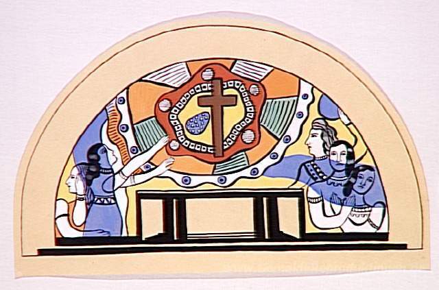 Wir bieten Ihnen eine handgefertigte Reproduktion auf Leinwand des berühmten Kunstwerks 'Ein Mosaik-Modell für die Krypta des Denkmals bei hohen Mardasso' von Fernand Leger, aus dem Reproduktionsmuseum.
