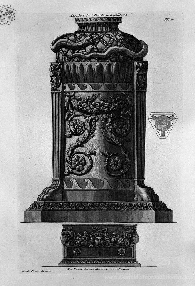 Wir bieten Ihnen eine handgefertigte Reproduktion auf Leinwand des berühmten Kunstwerks 'Ein Stativ und eine ehemalige' von Giovanni Battista Piranesi, aus dem Reproduktionsmuseum.