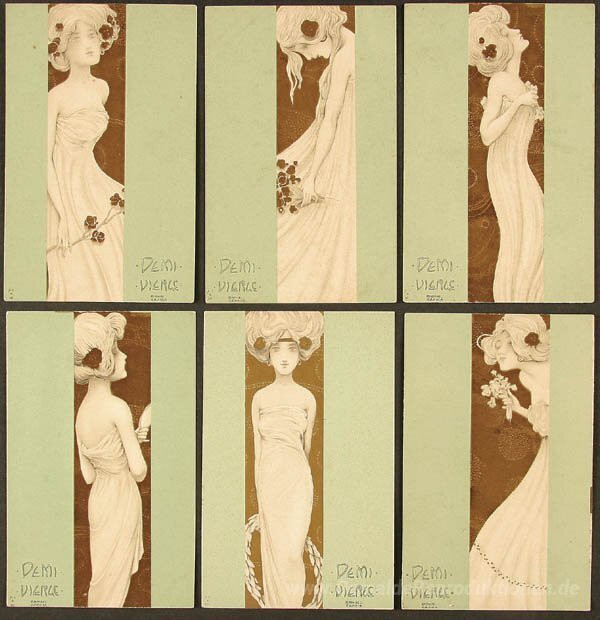 Wir bieten Ihnen eine handgefertigte Reproduktion auf Leinwand des berühmten Kunstwerks 'Eine Hälfte einer Jungfrau' von Raphael Kirchner, aus dem Reproduktionsmuseum.