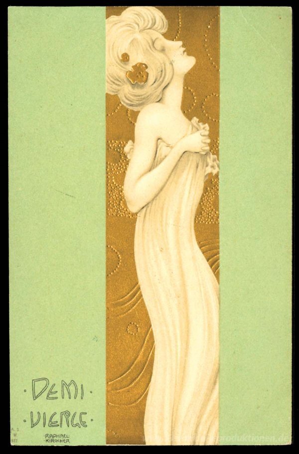 Wir bieten Ihnen eine handgefertigte Reproduktion auf Leinwand des berühmten Kunstwerks 'Eine Hälfte einer Jungfrau' von Raphael Kirchner, aus dem Reproduktionsmuseum.