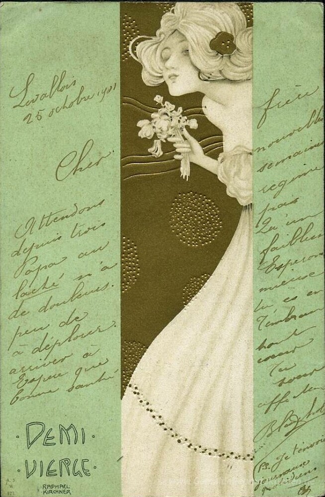 Wir bieten Ihnen eine handgefertigte Reproduktion auf Leinwand des berühmten Kunstwerks 'Eine Hälfte einer Jungfrau' von Raphael Kirchner, aus dem Reproduktionsmuseum.