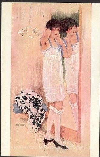 Wir bieten Ihnen eine handgefertigte Reproduktion auf Leinwand des berühmten Kunstwerks 'Einzelne Artikel' von Raphael Kirchner, aus dem Reproduktionsmuseum.
