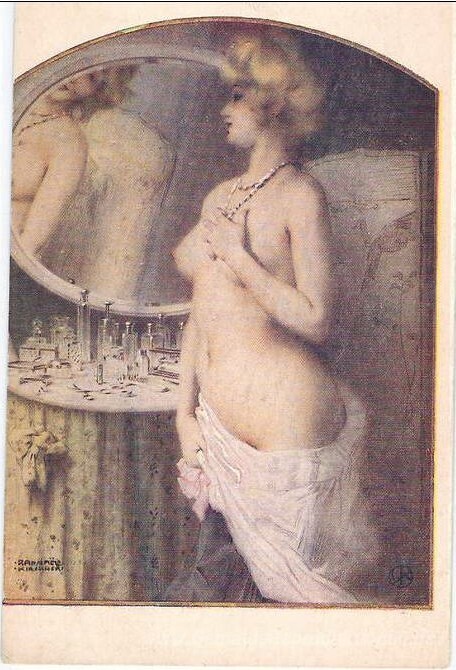 Wir bieten Ihnen eine handgefertigte Reproduktion auf Leinwand des berühmten Kunstwerks 'Einzelne Artikel' von Raphael Kirchner, aus dem Reproduktionsmuseum.