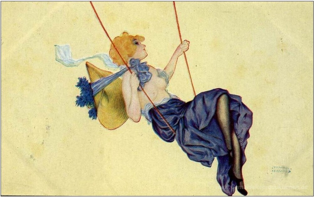 Wir bieten Ihnen eine handgefertigte Reproduktion auf Leinwand des berühmten Kunstwerks 'Einzelne Artikel' von Raphael Kirchner, aus dem Reproduktionsmuseum.