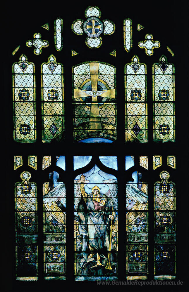 Wir bieten Ihnen eine handgefertigte Reproduktion auf Leinwand des berühmten Kunstwerks 'Engel der Auferstehung' von Louis Comfort Tiffany, aus dem Reproduktionsmuseum.
