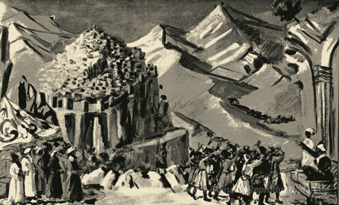 Wir bieten Ihnen eine handgefertigte Reproduktion auf Leinwand des berühmten Kunstwerks 'Entwurf für die Oper von A. Spendiarov 'Almast'' von Martiros Saryan, aus dem Reproduktionsmuseum.