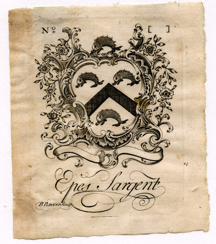 Wir bieten Ihnen eine handgefertigte Reproduktion auf Leinwand des berühmten Kunstwerks 'Epes Sargent Buchzeichen' von Paul Revere, aus dem Reproduktionsmuseum.