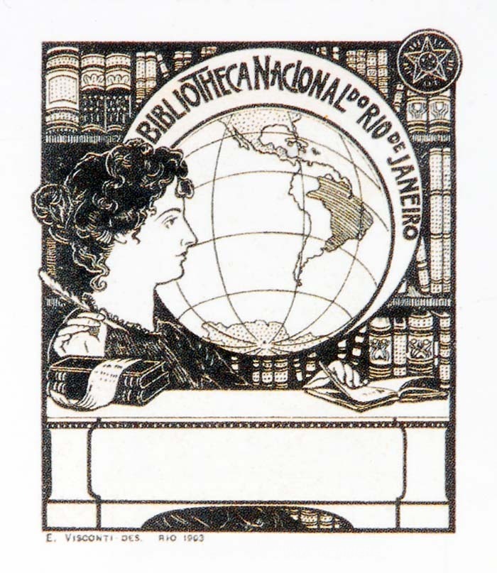 Wir bieten Ihnen eine handgefertigte Reproduktion auf Leinwand des berühmten Kunstwerks 'Ex Libris Bibliotheca Nacional' von Eliseu Visconti, aus dem Reproduktionsmuseum.
