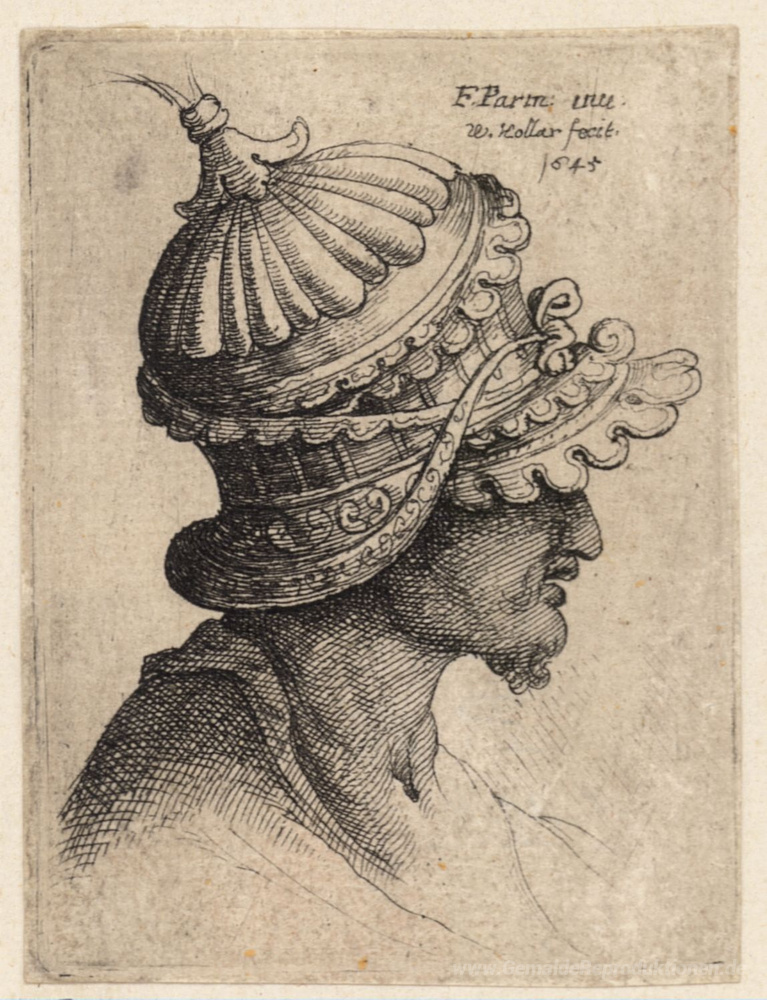 Wir bieten Ihnen eine handgefertigte Reproduktion auf Leinwand des berühmten Kunstwerks 'Extravagant Zierhelm' von Parmigianino, aus dem Reproduktionsmuseum.