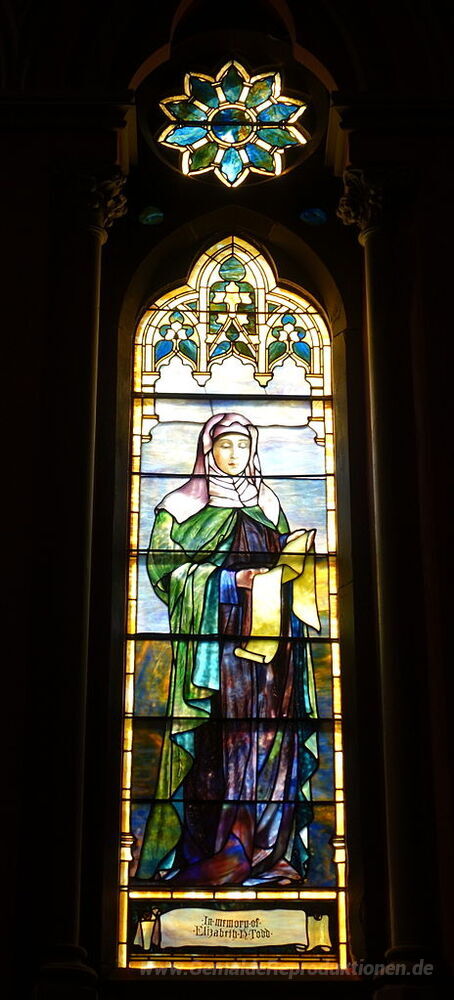 Wir bieten Ihnen eine handgefertigte Reproduktion auf Leinwand des berühmten Kunstwerks 'Fenster - Kirche des Bundes (Boston)' von Louis Comfort Tiffany, aus dem Reproduktionsmuseum.