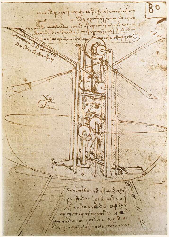 Wir bieten Ihnen eine handgefertigte Reproduktion auf Leinwand des berühmten Kunstwerks 'Flugmaschine' von Leonardo da Vinci, aus dem Reproduktionsmuseum.