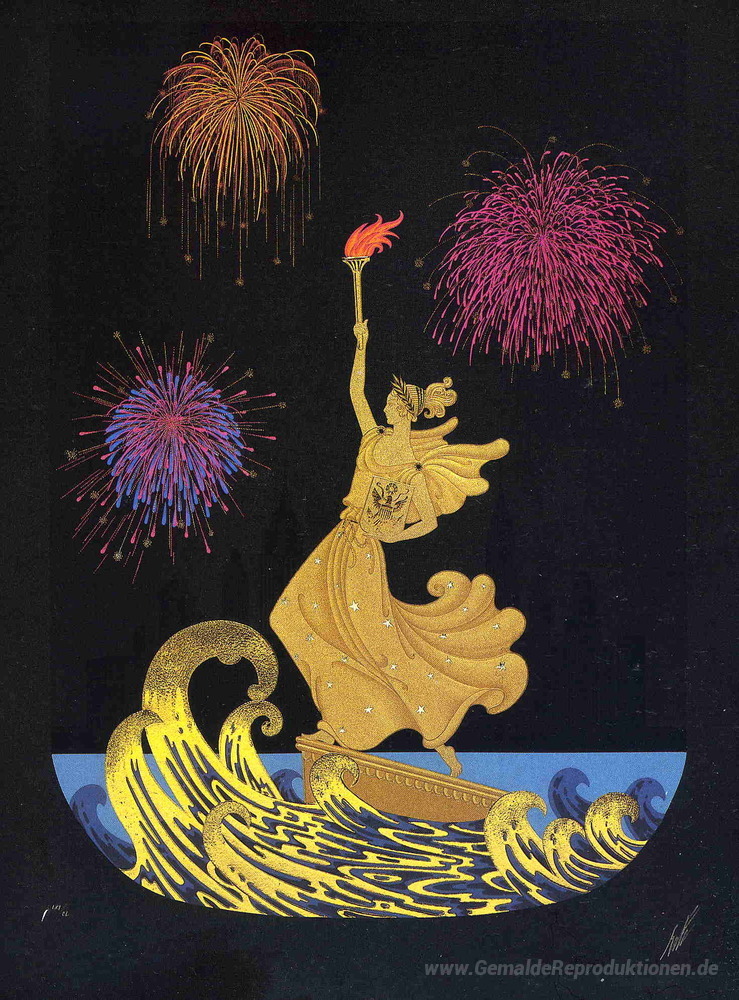Wir bieten Ihnen eine handgefertigte Reproduktion auf Leinwand des berühmten Kunstwerks 'Freiheitsstatue' von Erte, aus dem Reproduktionsmuseum.