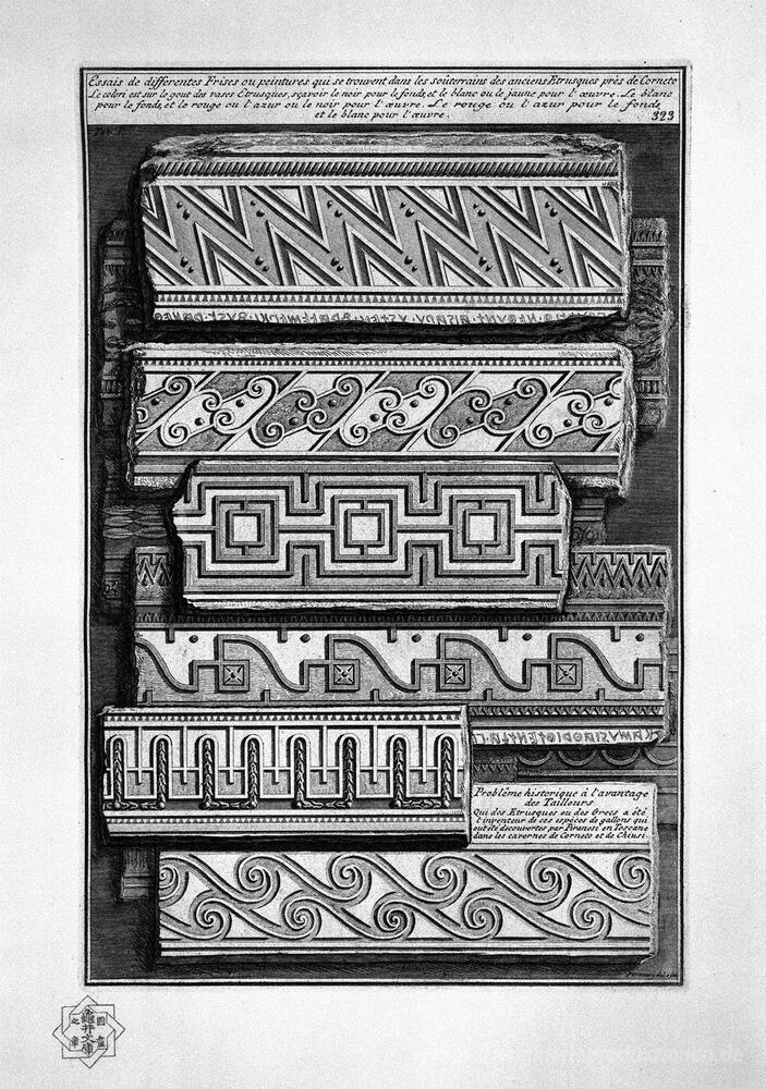 Wir bieten Ihnen eine handgefertigte Reproduktion auf Leinwand des berühmten Kunstwerks 'Friese von etruskischen Gräber von Tarquinia' von Giovanni Battista Piranesi, aus dem Reproduktionsmuseum.