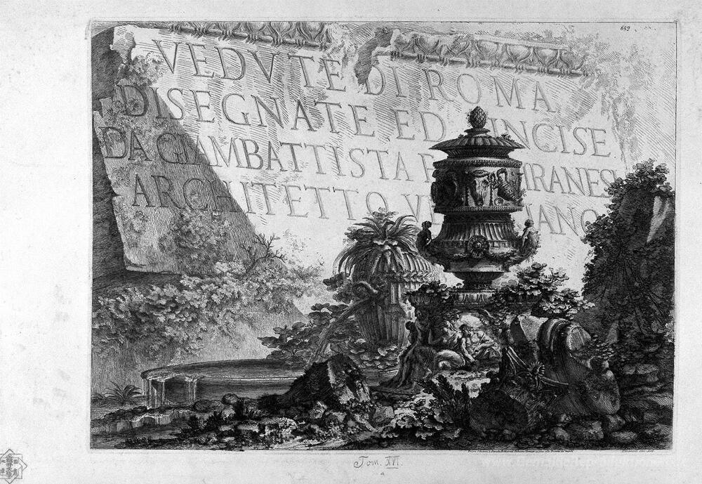 Wir bieten Ihnen eine handgefertigte Reproduktion auf Leinwand des berühmten Kunstwerks 'Frontispiz Im Vordergrund rechts unten, eine große dekorative Va' von Giovanni Battista Piranesi, aus dem Reproduktionsmuseum.