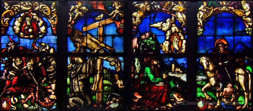Wir bieten Ihnen eine handgefertigte Reproduktion auf Leinwand des berühmten Kunstwerks 'Glasfenster in der Loch Familienkapelle' von Hans Baldung, aus dem Reproduktionsmuseum.