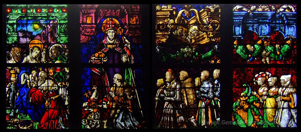 Wir bieten Ihnen eine handgefertigte Reproduktion auf Leinwand des berühmten Kunstwerks 'Glasfenster in der Stürzel Familienkapelle' von Hans Baldung, aus dem Reproduktionsmuseum.