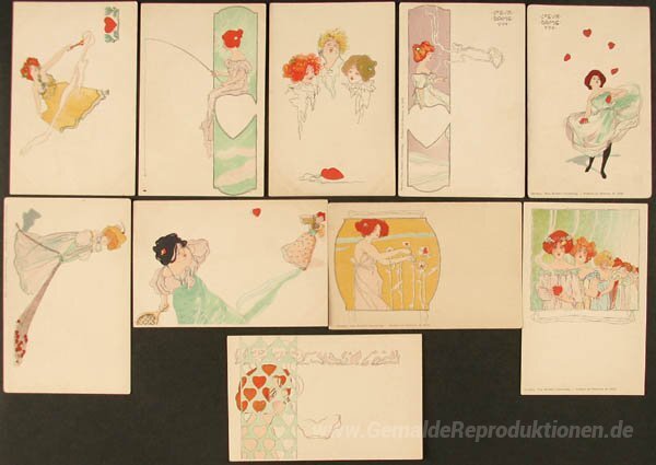 Wir bieten Ihnen eine handgefertigte Reproduktion auf Leinwand des berühmten Kunstwerks 'Herz Lady' von Raphael Kirchner, aus dem Reproduktionsmuseum.